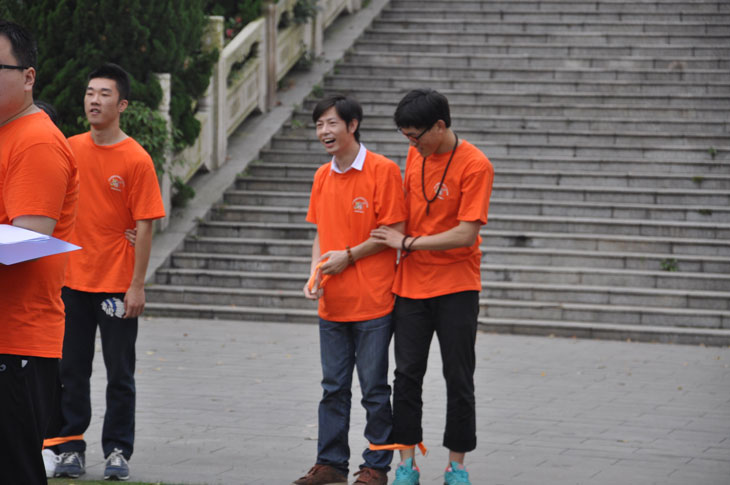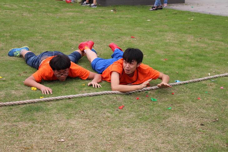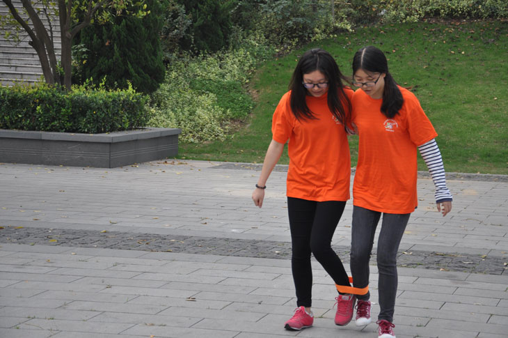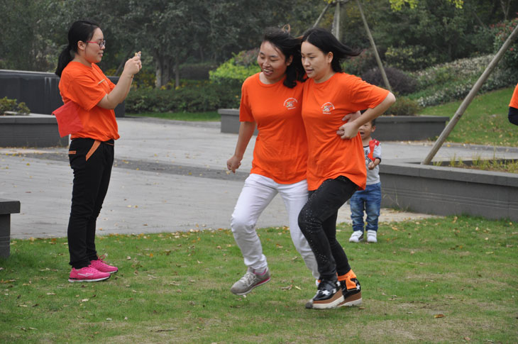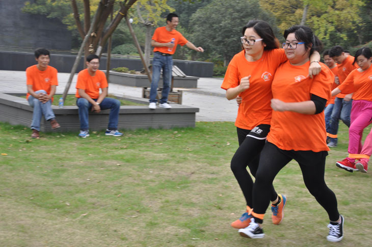 剛竣事厲害的拔河比塞,稍作歇歇時候掌管人發布刊發2人三足比塞就此起頭,比塞還未起頭,大師已在操練。