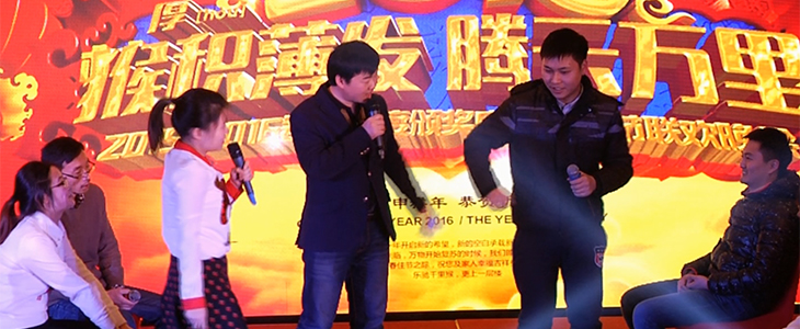 后邊起首有請咋們君通的大師長尹總來給二零一六年度君通杯春節晚會致揭幕詞,今屆君通杯春節晚會尹總約請了她的親妹妹姐夫、她的老同窗老麾下等佳賓到臨此前春節晚會,尹總最為東道主起首宏大地先容了這些人的即將到來:
